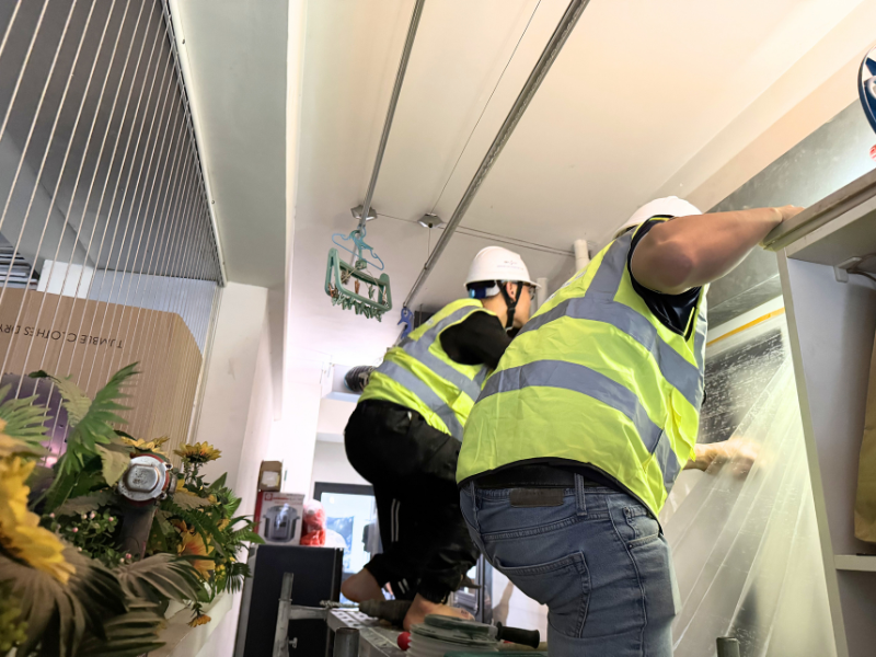 Thay vì hạ toàn bộ trần, kỹ thuật viên Broair đã phối hợp cùng giám sát để đưa ra phương án tối ưu: Cắt lỗ thăm trần chiến thuật.
