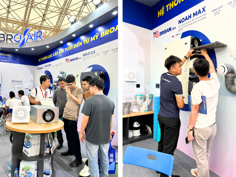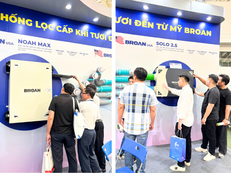 Giữa không gian triển lãm sôi động, gian hàng của Broair nổi bật như một "trạm dừng chân trong lành", giới thiệu giải pháp IAQ (Chất lượng không khí trong nhà) toàn diện đến từ thương hiệu Broan (USA).